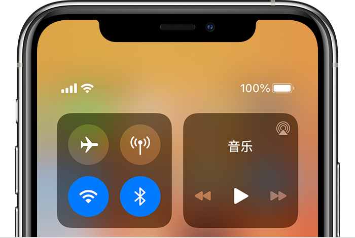 - 在 iPhone 上,确保“飞行模式”已关闭且 Wi-Fi 和蓝牙处于打开状态。要进行检查,请打开“控制中心”。