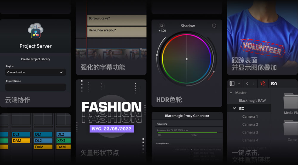 DaVinci Resolve 18支持Blackmagic Cloud,因此您可以在DaVinci Resolve Project Server项目服务器上云管理您的项目素材库,与世界各地的剪辑师、调色师、视觉特效师和音频工程师一起同时处理同一个项目!